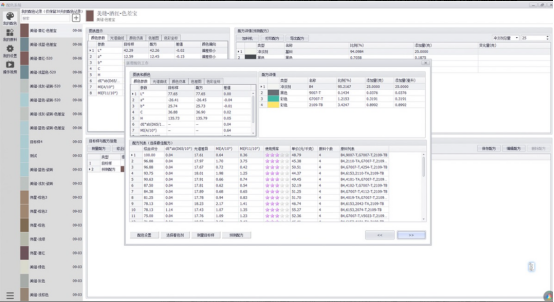 其核心优势在于色差控制能力:采用AI大模型算法,可将配色色差稳定控制在≤0.5的行业高水平,大部分的颜色仅需一次修正即可达标。这意味着印刷调色时,能大幅减少打样次数,显著降低油墨损耗与时间成本。软件内置适配印刷工艺的专业色彩数据库,兼容海德堡、小森等主流印刷机参数,支持CMYK、专色、透明色与半透明色的精准调配。更贴心的是,它支持废料/旧墨二次利用,智能优化配方,多数的配方色浆用量可控制在5%以下,直接为企业节约原材料成本。